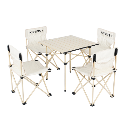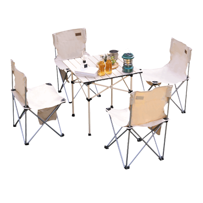 尚烤佳(Suncojia)户外便携桌椅套装 露营野餐桌椅 蛋卷桌 可折叠桌椅套装 五件套(单位:套) 象牙白