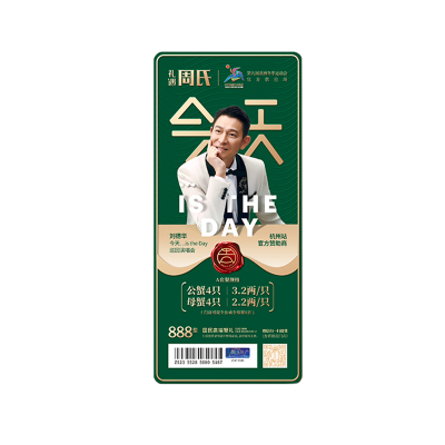 周氏大闸蟹A款-888型提货卡公蟹3.2两/4只 母蟹2.2两/4只 单位:张 松石绿