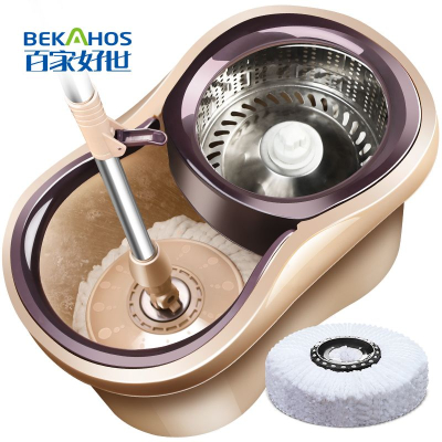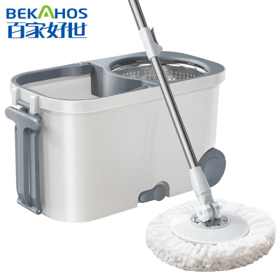 百家好世免手洗家用旋转式双驱动拖小蛮腰卡其色钢篮小杆金属盘3头(单位:件) 金属盘3头