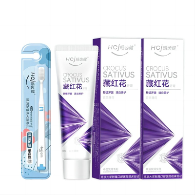 皓齿健 藏红花全效护理牙膏120g/盒+牙刷单支装 颜色随机 藏红花