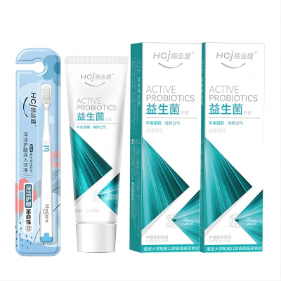皓齿健 全效护理牙膏120g *2支+纤柔牙刷1支 益生菌120g*2+牙刷1支