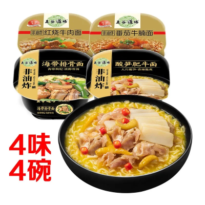 五谷道场 酸笋肥牛+海带排骨+番茄牛腩+红烧牛肉面 4碗/(面饼+料包)(每款各1碗) 橙色