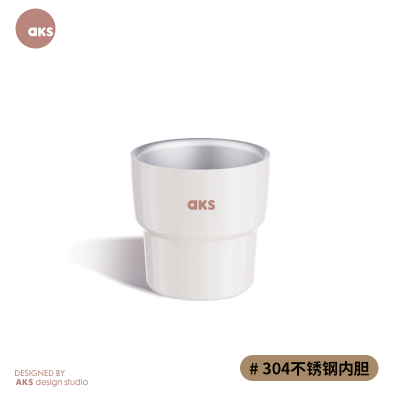 AKSGAGA联名咖啡杯原创304不锈钢双层水杯便携隔热分享杯意式迷你杯 2.0版白色1只装【304 白色