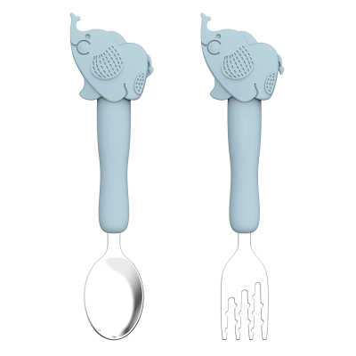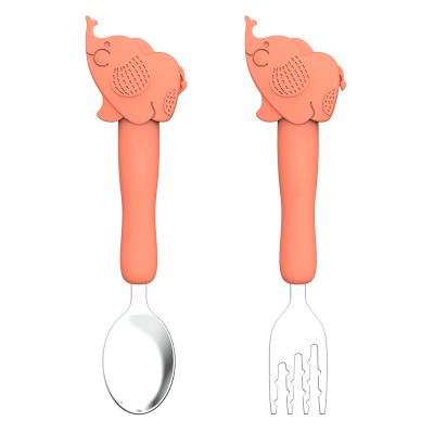 howawa好娃娃儿童弯头叉勺套装宝宝学吃饭训练勺子婴儿辅食勺弯曲A0218 茱萸粉