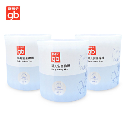 好孩子(gb)婴儿棉签棒宝宝专用超细头新生儿耳鼻葫芦头棉签 60支*3盒 白色 白色