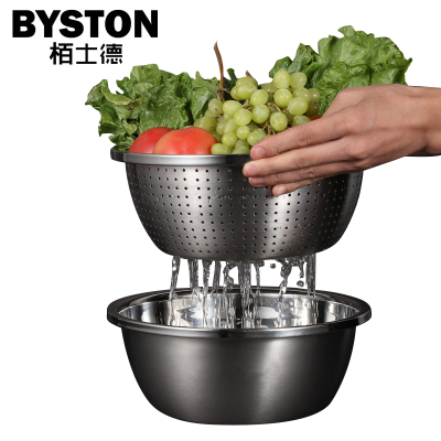 栢士德BYSTON 聚宝盆两件套 BST-059D 24CM沥水盆+26CM多用盆(单位:套) 不锈钢色
