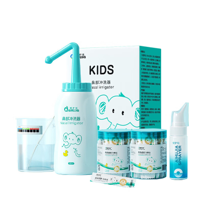爱护佳(aiHuJia儿童洗鼻器卡通款套装 4罐共120包盐+1个洗鼻器+2个喷头