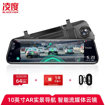 凌度智能行车记录仪10英寸 流媒体 AR实景导航 4G云镜高清夜视语音导航前后双录停车监控手机互联 十英寸智能AR实景导航双录+64G卡+1年流量 黑色