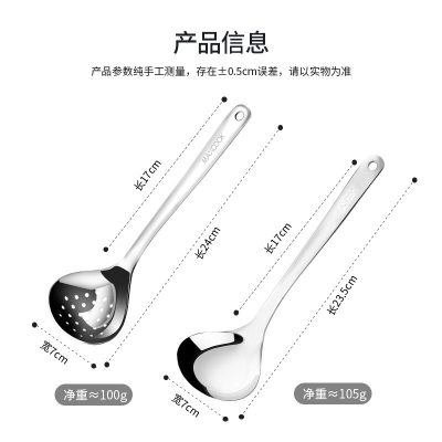 美厨 304不锈钢汤勺漏勺加长款 两件套 MCCU427 不锈钢色
