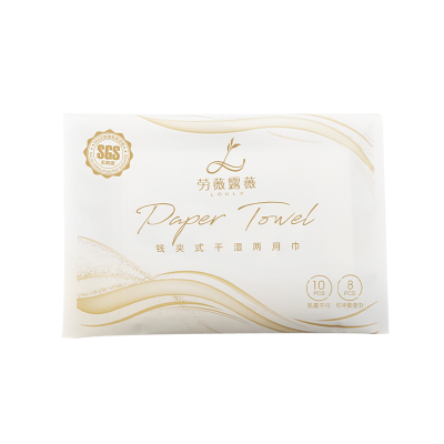 劳薇露薇钱夹式干湿两用巾4包/提干巾+湿巾 自然色