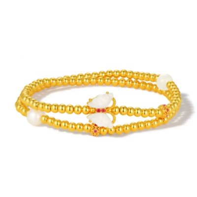 周大生/CHOWTAISENGS925银和田玉珍珠蝴蝶手串S1HC0247(单位:件) 金色