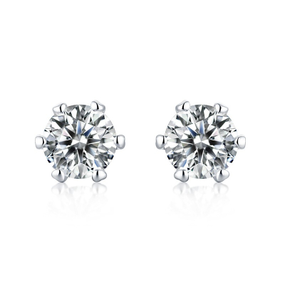 香港HKGOLD 一克拉银镶莫桑钻耳钉S925经典六爪MC10101 银色