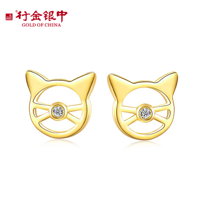 中银金行S925镶钻石项链可爱猫咪耳钉(单位:件) 黄色