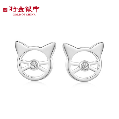 中银金行S925镶钻石项链可爱猫咪耳钉(单位:件) 白色