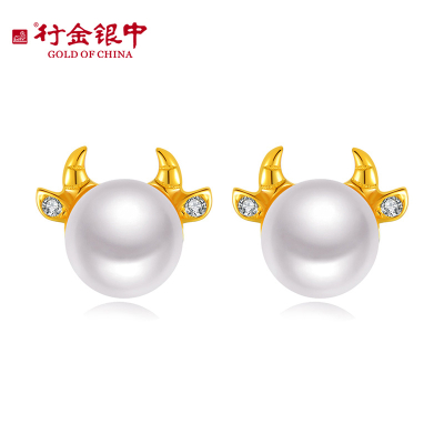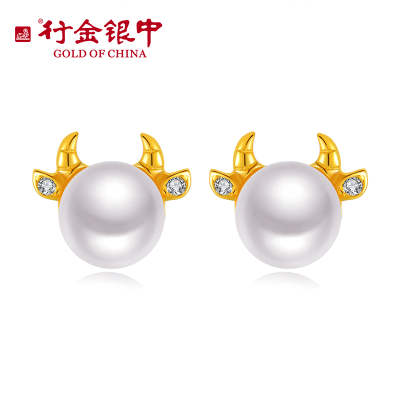 中银金行本命年淡水珍珠牛头锆石生肖牛耳环(单位:件) 金色