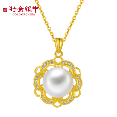行金银中 S925银时尚镂空花纹镶圆形淡水珍珠吊坠赠合金链 (单位:件) 黄色