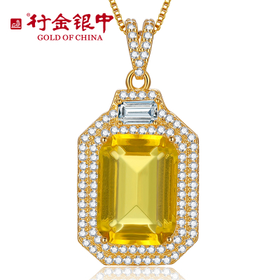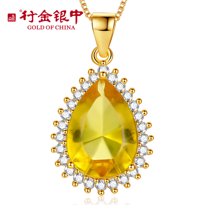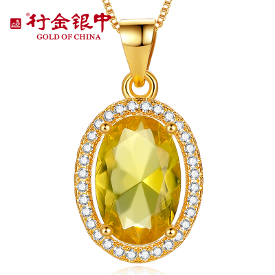 行金银中 S925银时尚气质椭圆形镶嵌锆石豪华吊坠赠合金链 (单位:件) 黄色