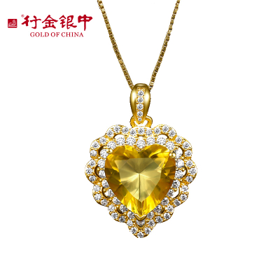 行金银中 S925银一见倾心镶嵌豪华爱心琥珀吊坠送女友赠合金链 (单位:件) 黄色