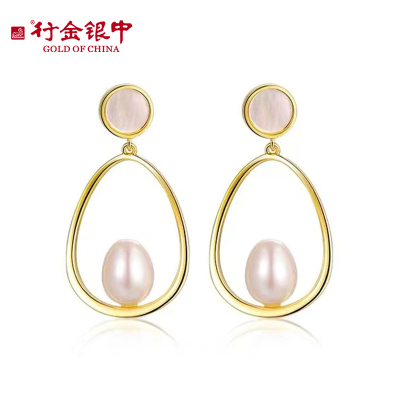 中银金行S925银饰淡水珍珠耳饰白贝耳钉气质INS风(单位:件) 黄色