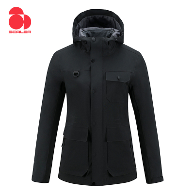 思凯乐女抓绒两件套冲锋衣防寒服f2402707 黑色 XS