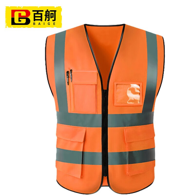 百舸 反光背心耐磨加厚 多口袋拉链款 橙色 BG-ST-4236-0(单位:件) 橙色