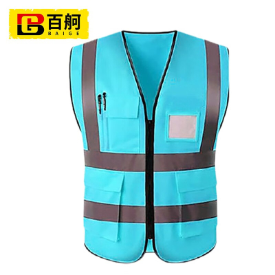 百舸 反光背心耐磨加厚 多口袋拉链款 湖蓝色 BG-ST-6249-0(单位:件) 湖蓝色