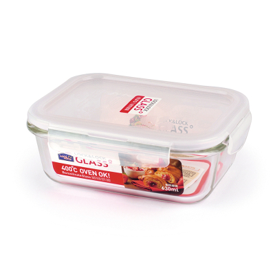 乐扣乐扣耐热玻璃保鲜盒(630ML)长方形 LLG 428FU透明色 白色