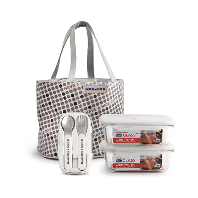 乐扣乐扣 LOCK&LOCK 玻璃保鲜盒悦活提袋套装 LLG905FU 透明色