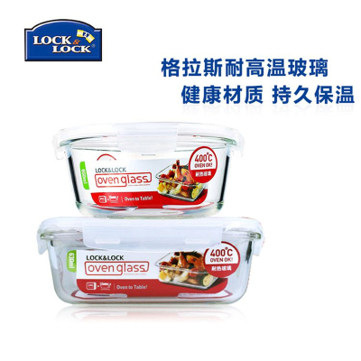 乐扣乐扣耐热玻璃保鲜盒两件套LLG831S90/套 无色
