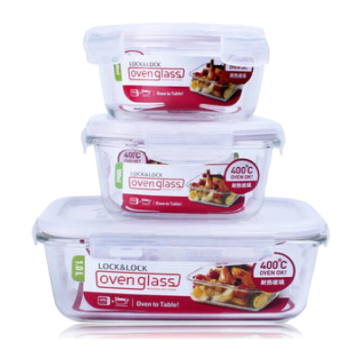 乐扣乐扣(LOCK&LOCK)耐热玻璃保鲜盒三件套LLG821S001(单位:套) 豆沙色