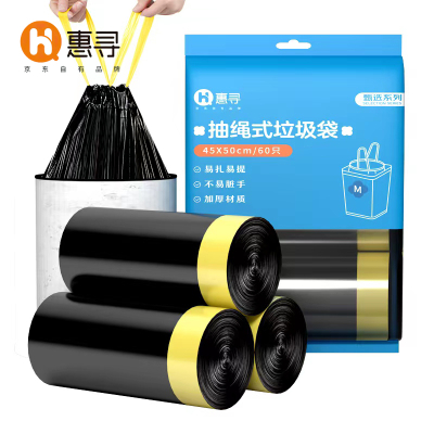 惠寻 HX-5602 60只装 黑色 抽绳式垃圾袋 (单位:包) 黑色