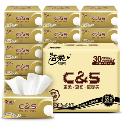 洁柔金尊软抽面巾纸100抽3层30包装GR203-30E 白色