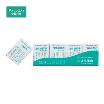 全棉时代口袋棉柔巾45g平纹 210mm*210mm 8片/包 8包/袋(单位:袋) 蓝色