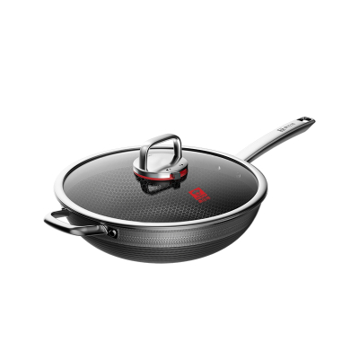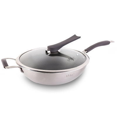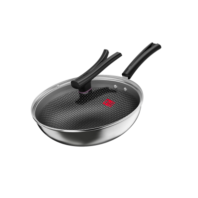 左家右厨不易粘锅家用炒锅304不锈钢蜂窝不易粘炒菜锅电磁炉通用/个 浅灰色