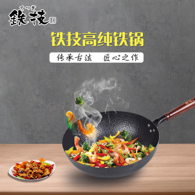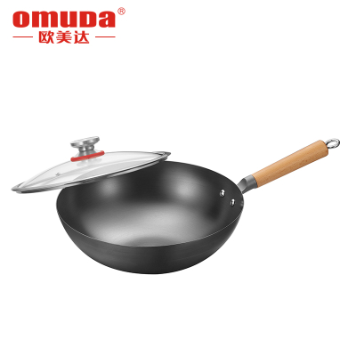 欧美达国匠系列-中式精铁炒锅A款32CM JTC32-A 曜石黑
