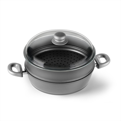 Miji 德国米技星辰系列不粘锅28cm双耳煎炒锅带蒸格套装(高拱玻璃盖)MIJI-STARTS28-BSP/CN 套 灰色