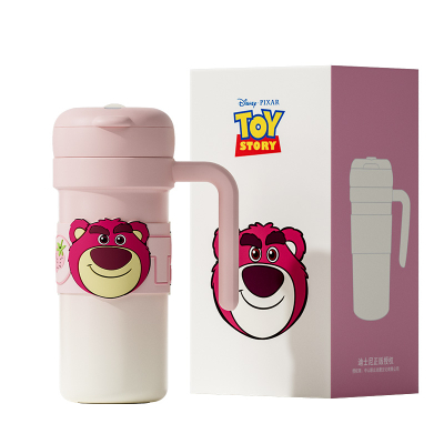 迪士尼高颜值316不锈钢双饮杯大容量茶仓吸管直饮保温水壶760ml H15004(单位:个) 粉色