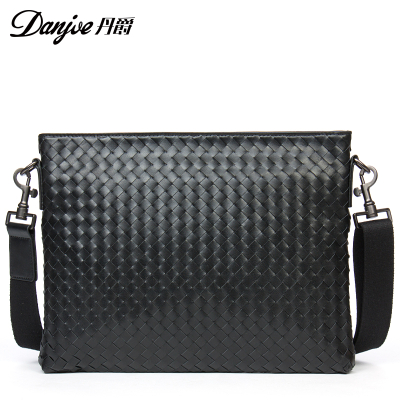 丹爵头层牛皮单肩包编织男士包横款斜跨包时尚男包公文包8059-2 黑色