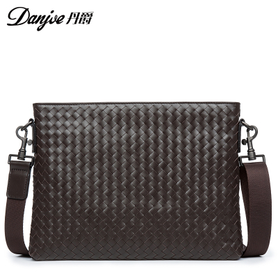 丹爵头层牛皮单肩包编织男士包横款斜跨包时尚男包公文包8059-2 棕色