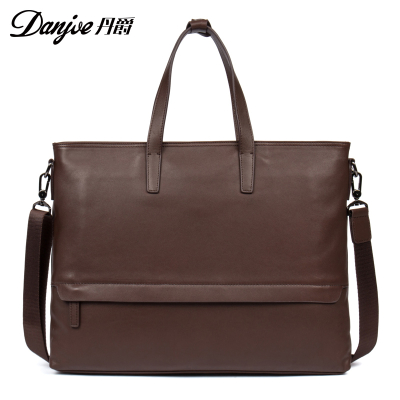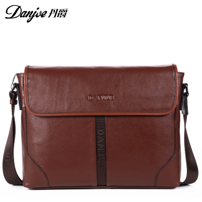 丹爵(DANJUE)新款横款男包时尚头层牛皮男士手提公文包商务休闲单肩包斜挎包D181-1(单位:个 棕色