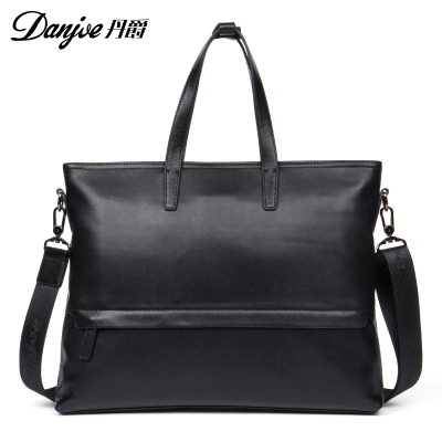 丹爵(DANJUE)新款横款男包时尚头层牛皮男士手提公文包商务休闲单肩包斜挎包D181-1(单位:个 黑色