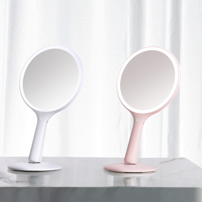 斐色耐 摇摇镜便携手持led化妆镜家用手柄式带灯补光美妆梳妆镜子 RM285-DL三色光 梨花白
