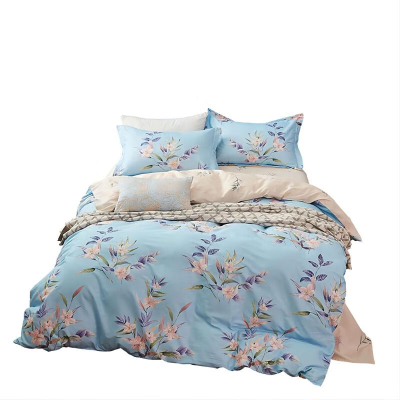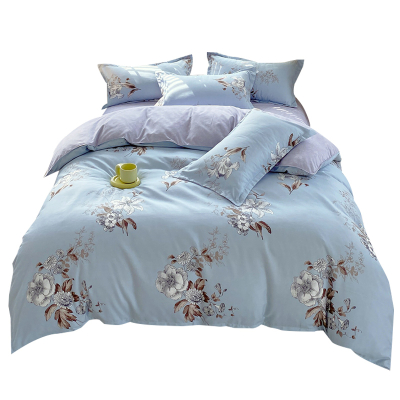 约克罗兰活性长绒棉四件套-花下之约蓝YTJ3104 200*230(单位:套) 天蓝色