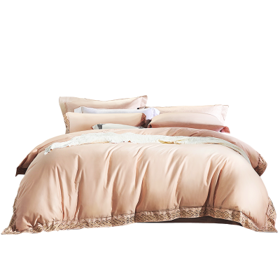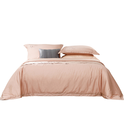 富安娜四件套纯棉长绒棉100支双股套件抗菌刺绣被套床单/江山如画230*229cm(单位:套) 浅橙色