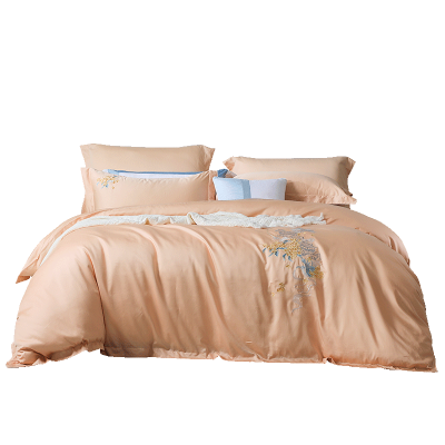 富安娜四件套纯棉长绒棉100支双股套件抗菌刺绣被套床单/江山如画203*229cm(单位:套) 浅橙色