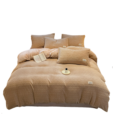 保罗彼得PL-T24715牛奶绒四件套200*230cm(单位:套) 华夫格-深咖