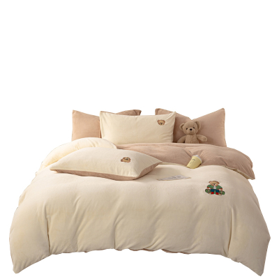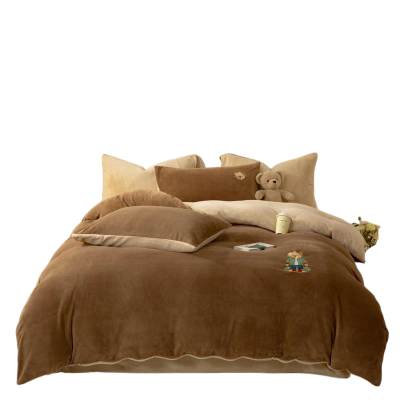 保罗彼得PL-T24715牛奶绒四件套200*230cm(单位:套) 滑板熊(深咖+米黄)