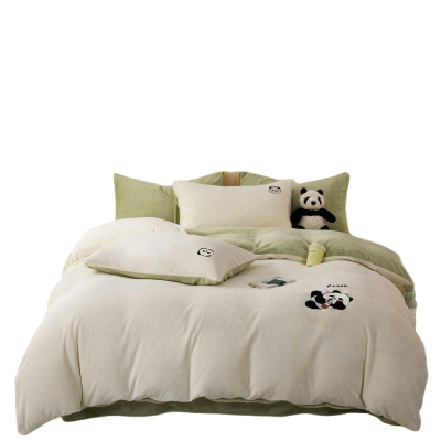 保罗彼得PL-T24715牛奶绒四件套200*230cm(单位:套) 熊猫(白+草绿)
