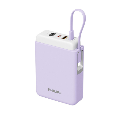飞利浦(PHILIPS)DLP2209L/93移动电源三口输出2A1C快充线接口A-C 1万毫安容量 紫白