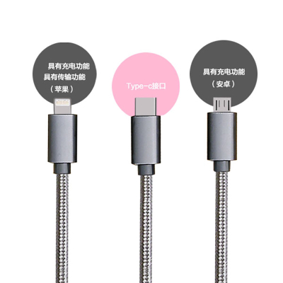 乐默LOOMOO编织绳一拖三数据线 LCB-109 灰色